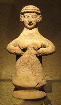 De beeldjes met de prominente borsten zonder verdere geslachtskenmerken zoals een vulva representeren de voedende moedergodin.